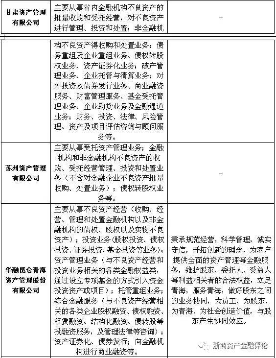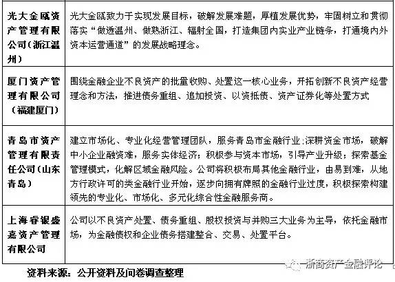 值得注意的是,除去主流的不良資產(chǎn)處置業(yè)務(wù)、資產(chǎn)管理業(yè)務(wù)、投資與咨詢等方面的業(yè)務(wù)外。部分資產(chǎn)管理公司另辟蹊徑,開展了一些較為獨特的業(yè)務(wù)。具體來看,較為特殊的有上海國有資產(chǎn)經(jīng)營有限公司的不動產(chǎn)投資業(yè)務(wù)、重慶渝富資產(chǎn)經(jīng)營管理集團有限公司的土地經(jīng)營和城市建設(shè)業(yè)務(wù)以及福建省閩投資產(chǎn)管理有限公司的對金融、基礎(chǔ)設(shè)施、高新技術(shù)產(chǎn)業(yè)、工業(yè)、制造業(yè)、服務(wù)業(yè)的投資與管理業(yè)務(wù)等等。上述業(yè)務(wù)的開展,很大程度上與地區(qū)的行業(yè)優(yōu)勢或地方政府的相關(guān)規(guī)劃和發(fā)展需要相關(guān)。