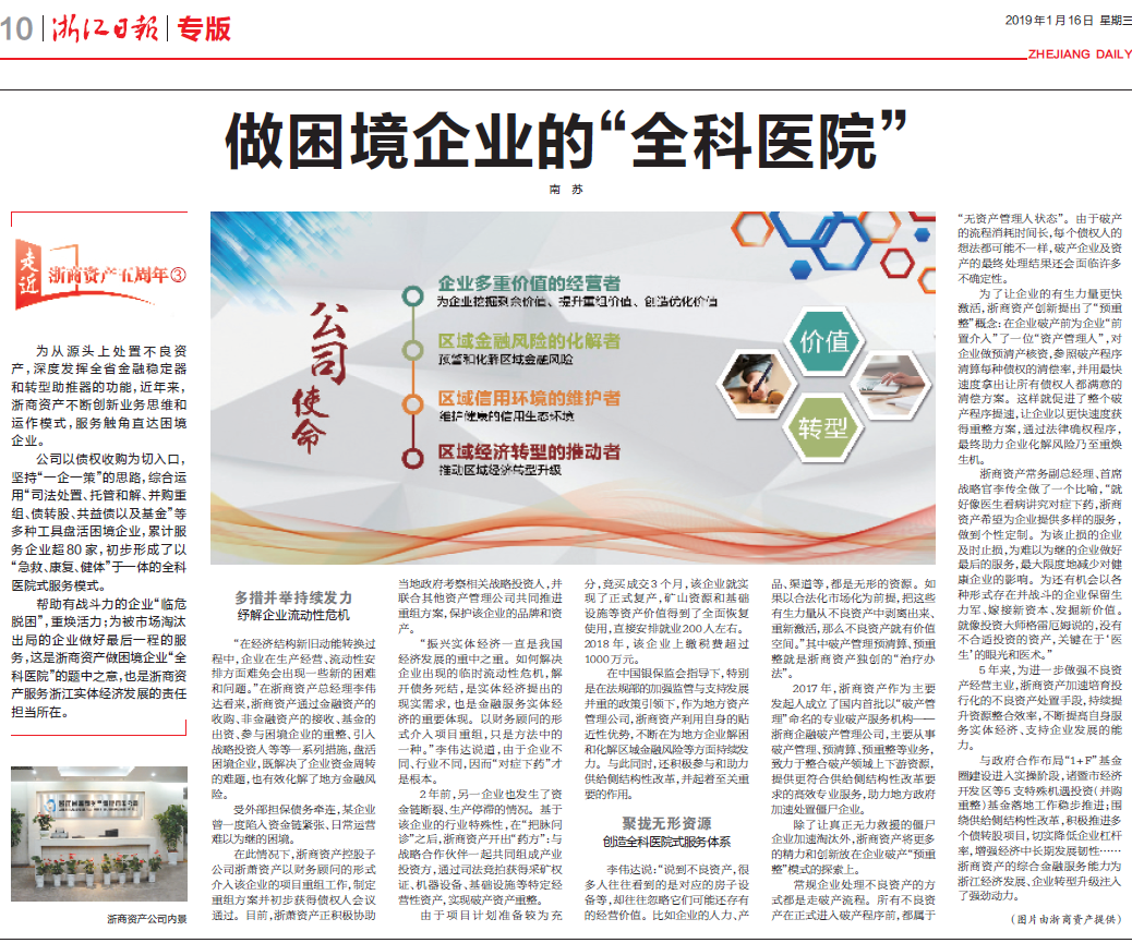 【浙江日?qǐng)?bào)】走近浙商資產(chǎn)五周年系列三:做困境企業(yè)的“全科醫(yī)院”
