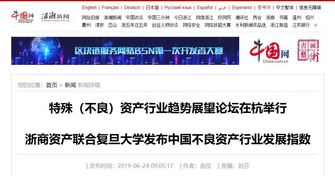 【中國網(wǎng)】特殊(不良)資產(chǎn)行業(yè)趨勢(shì)展望論壇在杭舉行 浙商資產(chǎn)聯(lián)合復(fù)旦大學(xué)發(fā)布中國不良資產(chǎn)行業(yè)發(fā)展指數(shù)